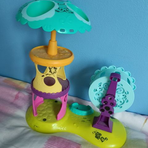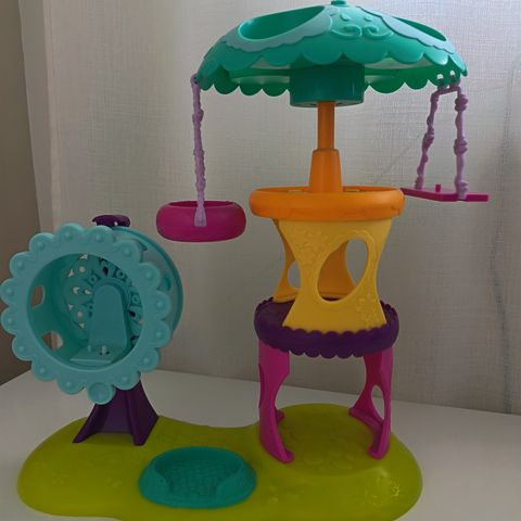 Littlest Pet Shop huvipuisto. Kunto hyvä ja ehjä. Mukaan kuvassa näkyvät tarvikkeet ja hahmot.