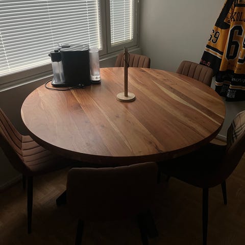 Myydään ruokailuryhmä johon kuuluu tilava pyöreä