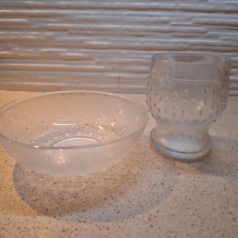 Siistikuntoiset ja nostalgiaset Riihimäen Pisara korkeat juomalasit, 4 kpl. Korkeus 13 cm, läpimitta 6,5 cm.