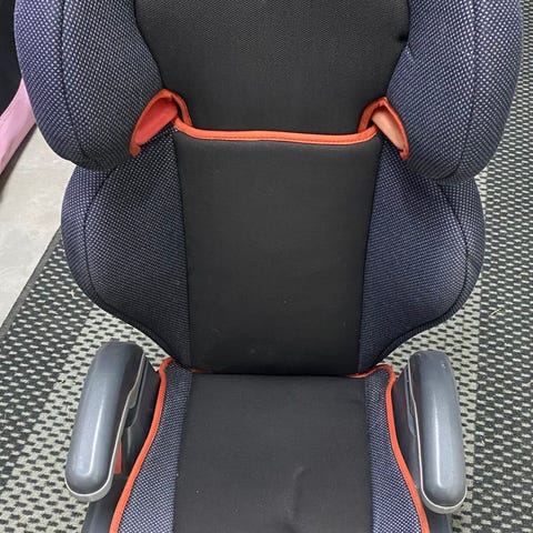 Paljon käytetty, silti vielä hyvässä kunnossa oleva gracon turvaistuin. Selkänoja irrotettava, voi käyttää myös pelkästään istuinkorokkeena. Irrotettavat päälliset, pesu jää ostajalle.