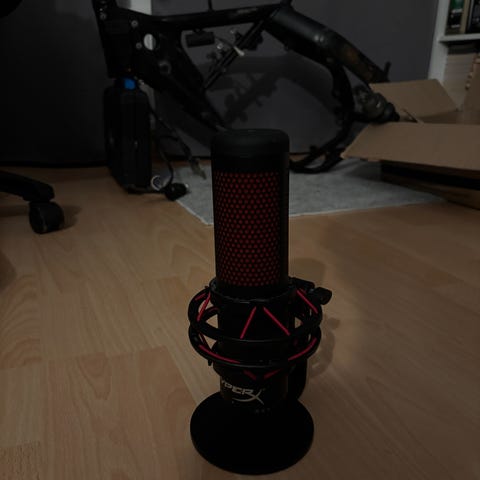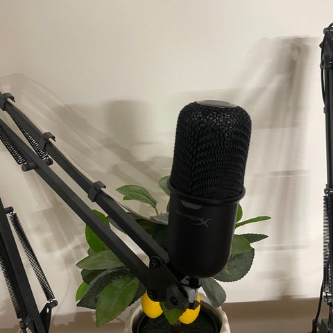 Hyper x quadcast mikrofoni ja Thronmax jalalla. Mukaan alkuperäinen Hyper x Quadcastin jalka ja Thronmax mukana tulleet oheistuotteet. Kaikki toimii moitteettomasti! Jalasta lähtevä johto on noin 190cm jalasta lähtien.