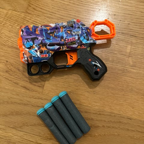 Myydään ilmanpaineella toimiva leluase, jossa pehmeät ja pyöreät panokset. Panoksen osuma ei satu tai riko paikkoja. Mukana maalitaulu. Vain nouto.