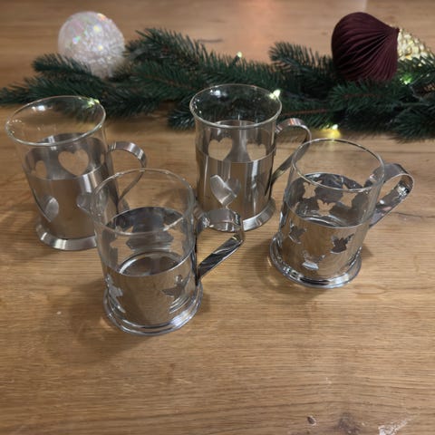 Ihanan jouluiset, käyttämättömät Pentikin lasiset glögilasit ja huopa-aluset x6.