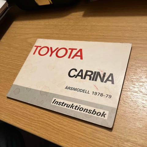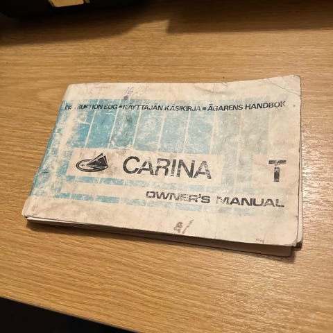 Kuvissa oleva huolto-ja korjausopas Toyota Carina 2 1984-. Kovakantinen vuodelta 1989.