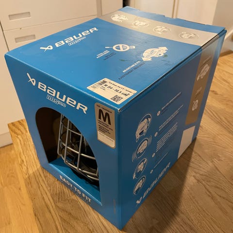Bauer IMS 5.0 S koon jääkiekkokypärä ristikolla. Kypärässä säädöt ilman ruuvimeisseliä.