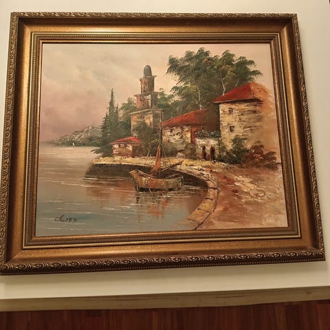Kehyksessä on jotain ihan pieniä jälkiä. Maalaus jäljetön