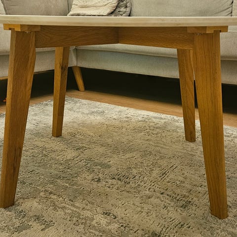 Pyöreä pöytä, jossa valkoinen pöytälevy ja puujalat. Korkeus 50 cm ja halkaisija 80 cm. Pöytä sopii erilaisiin tiloihin, kuten olohuoneeseen. Pöytälevyssä on pieni naarmu, joka näkyy kuvassa. Vain nouto. Käteinen tai MobilePay.
