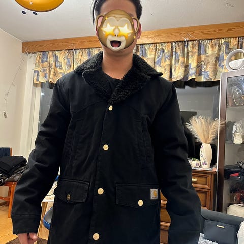 Tarpeettomaksi jäänyt Carhartt talvitakki (ei ihan kaikkein kovimmille pakkasille). Kunto on ihan hyvä, ei ole rikki mistään mutta käytön jälkiä näkyy hihan suissa ja taskuissa. Tämähän kestää mitä vaan. Koko M joka on aika väljä, menee paksu villapaita alle.