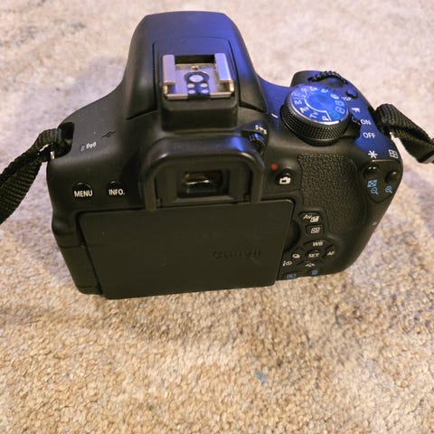 Canon EOS 750D järjestelmäkamera, mukana lisäsalma, objektiivi 18-55mm DC III, muistikortti, laturi ja laukku. Kamera soveltuu valokuvaukseen ja videokuvaukseen. Mukana Sandisk 64 GB muistikortti. kosketusnäyttö. Jaa kuvat ja videot helposti älylaitteille WiFi NFC -toiminnon avulla. Voit myös käyttää älypuhelintasi kameran ohjaamiseen.