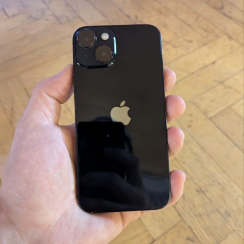 Myydään iPhone 14, 128GB, väri Starlight (valkoinen).