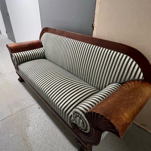 Hakusanat: raidallinen, puukaiverrus, 1800-luku, käytetyt huonekalut, sohva, sohvat, antiikki, huonekalu, huonekalut, empire, klassinen