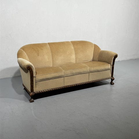 Sohva on ikäisekseen hyvässä kunnossa ja sen pinnat on jossain vaiheessa entisöity. Verhoilussa ei jälkiä. Vastaavankuntoinen sohva, tällä tyylillä harvoin tarjolla.