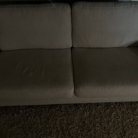 Värinä tiilenpunainen. Pientä haalistumaa kankaassa mutta muutoin kunnossa. Nouto keskustasta