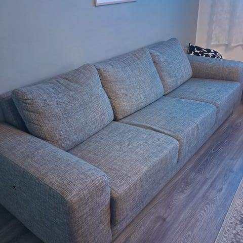 Moderni ja elegantti, hyväkuntoinen harmaa jysk- sohva. 2,5 istuttava. Topakka istua, pehmeät tyynyt. Tyynyt ovat irrotettavia. Metalliset jalat, sohvan alta on helppo muroida. Sopii pienempiin tiloihin, helppo yhdistää muiden huonekalujen ja värien kanssa. Nouto 29.12.2025 alkaen. Omat kantajat mukaan.