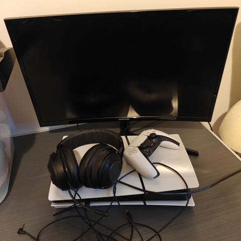 Playstation 5 pelikonsoli, mukana yksi ohjain.