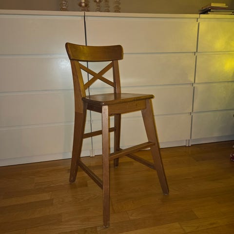 Myydään paljon käytetty juniorituoli. Tuoli on ehjä ja erittäin tukeva, mutta on paljon käytetty ja tuolissa on selkeitä käytönjälkiä.