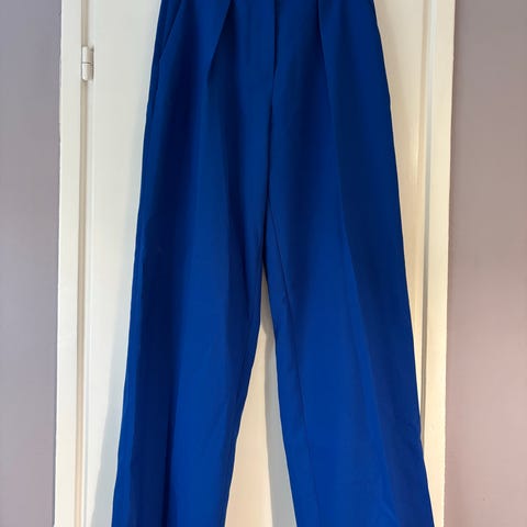Vimma Äidin valvova silmä -housut XS/S-koko, väriltään kirjava (musta, kullanhohtoinen ja sininen). Housut sopivat erilaisiin käyttötarkoituksiin ja ovat suunniteltu Suomessa.