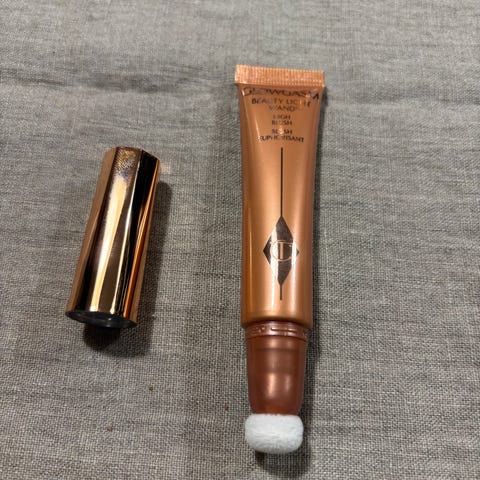 Tämä on Charlotte Tilbury Hollywood Beauty Light Wand -nestemäinen korostus. Se antaa iholle säteilevän, luonnollisen hehkun. Tuote tunnetaan helposta levitettävyydestään ja pitkäkestoisesta käytöstä. Sen erittäin hieno shimmer saa ihon näyttämään virheettömältä korostamatta ihon tekstuuria. Sitä voidaan käyttää poskipäillä, kulmaluulla ja amorinkaarella.