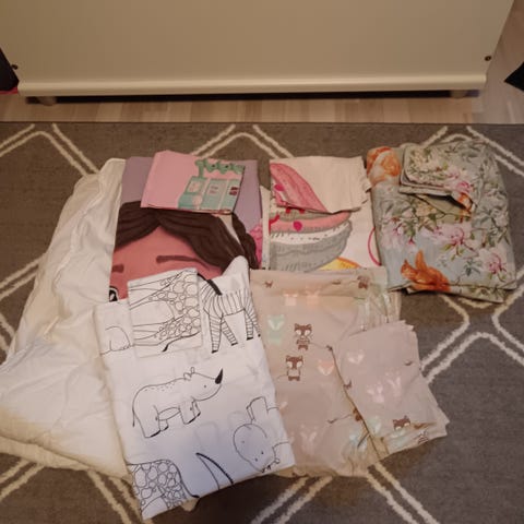 Lasten peittoon sopivat 120 x 150cm pussilakana + tyynyliinasetti x 2. Tekstiilit sopivat lastenhuoneen sisustukseen.