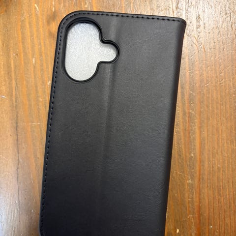 Tyylikäs aidosta nahasta käsintehty Flip kotelo iPhone 17 Pro:lle, kolmella luottokortti paikalla sekä isolla taskulla.
