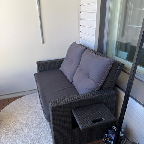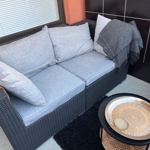 Myydään hyvässä kunnossa oleva sohvan moduuli piha / parvekekäyttöön (kuva 4 näyttää pienet käytön jäljet). Ostettu Jyskistä, osa RAVNDRUP sohvakokonaisuutta. Voi käyttää sellaisenaan nojatuolina tai liittää moduulina sohvan muihin paloihin. Ovh 199. Leveys 74, syvyys 82, korkeus 64. Nouto espoosta mankkaalta.