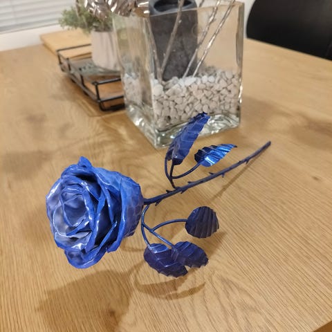 Myydään tuollaisia omavalmiste metallisia ruusuja. Kuvan esimerkki asettelu 3ruusua metallivärillä 90€