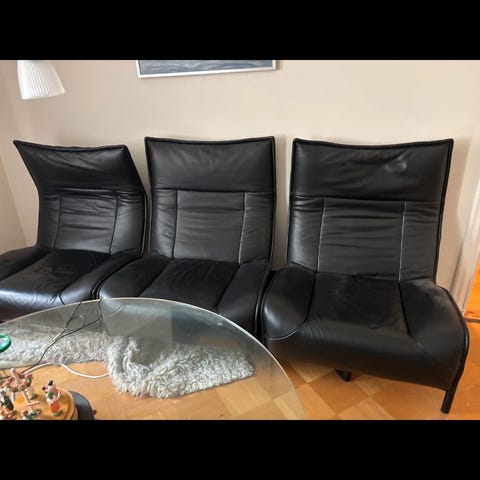 Sohva tyynyt vähän kulahtaneet, mutta nahanpesuaineella saa varmasti puhtaaksi.