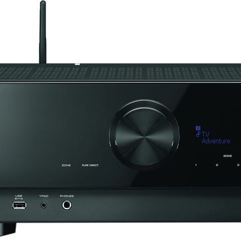 Vahvistin: Yamaha HTR-2067. Tukee mm. 4K-läpivientiä, HDMI CEC- ja ARC-toimintoja.