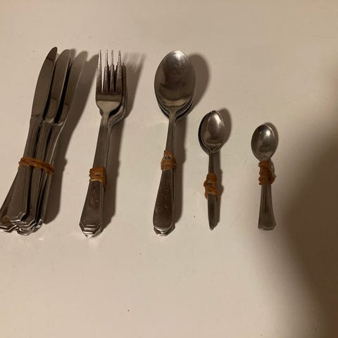 Haarukka, veitsi ja ruokalusikkasetti. Kutakin 10 kpl, klyttämättömiä