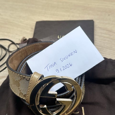 Gucci GG SUPREME unisex nahkavyö, jossa metallinen solki. Vyössä on merkin tunnistettava kuviointi ja se on valmistettu nahkasta.