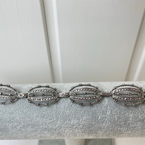 Vintage Finland Hopea 830H Rannekoru kalsedonikivi 1970