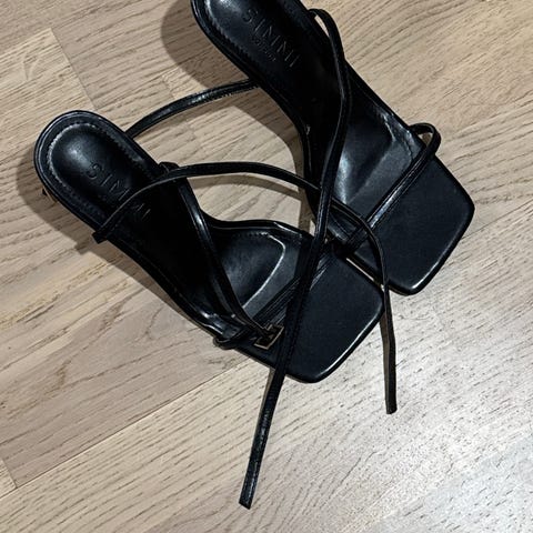Glamorous satiiniset korkokengät, koko 38, kuparinen oranssi väri. Kengissä on 10cm korko ja nilkan ympärille sidottavat nauhat. Kauniit juhlakengät!
