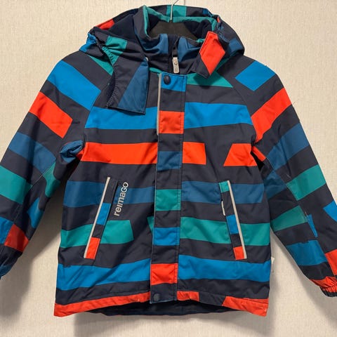 Hyväkuntoinen Reiman kevyempi toppatakki, tarkenee pakkasellakin. Koko 110cm mutta menee pitkään, nyt 128cm jäänyt hihat lyhyiksi.