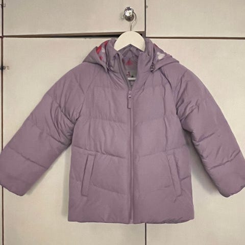 Kukallinen kevyehkö toppatakki, ei kylmimmille pakkasille. Merkki Ciraf. Ollut yhdellä tytöllä kauppatakkina.