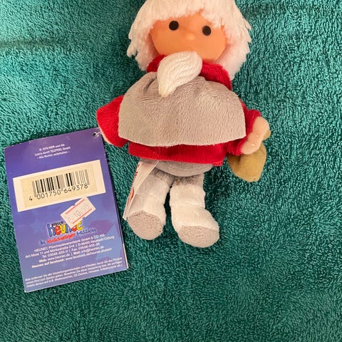 Nukkumatti nukke. Alempi nappi irronnut, voi omella takaisin kiinni. Voi noutaa tai voin postittaa matkahuollon pakettina.