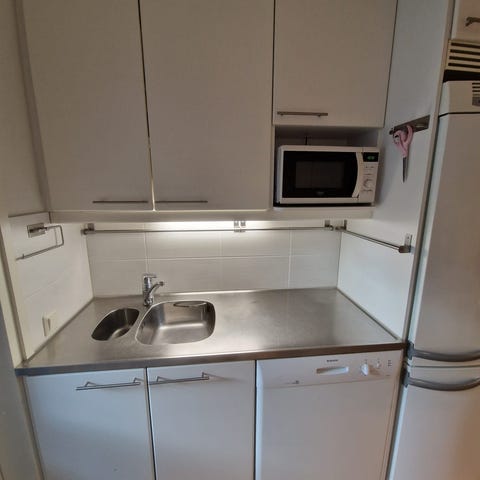 Myynnissä erikseen myös kuvassa 2. näkyvät, mikrokaappi ja oikean reunan korkea hyllykomero jääkaapin vieressä runkoineen. Katso niiden erilliset ilmoitukset.