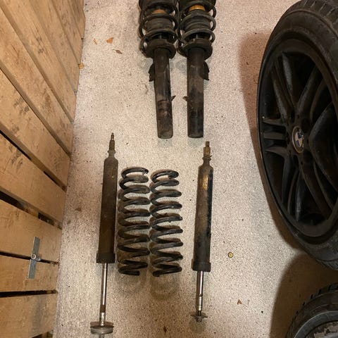 BMW jousitusosat, sisältäen etu- ja takajouset sekä iskunvaimentimet. Myös kaikki joustinkumit ja etupääniskareiden laakerit. Osat ovat käytettyjä ja soveltuvat BMW-autoihin.