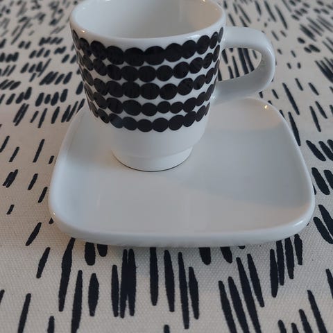 4kpl Marimekon Oiva valkoiset käyttämättömät espressokupit, 0,5dl.