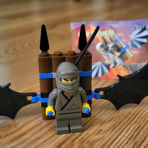 Tuotteessa on kaikki muut osat paitsi ninjan alkuperäinen miekka. Korvaavana osana musta legokeppi.