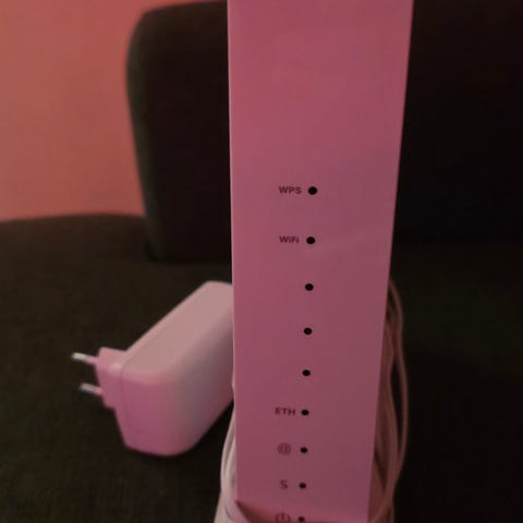 Sagemcom F@ST 3868 V2 DNA reititin, jossa useita Ethernet-portteja ja langattoman verkon tuki.