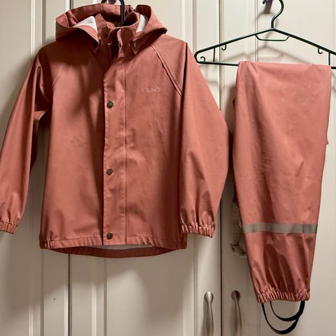 Kuling sadevaatteet fleecevuorella. Takki hyvässä käytetyssä kunnossa. Huppu kuuluu kauppaan, puuttuu vaan kuvasta. Housuissa edessä paikkaus, joka on ollut käytössä vedenpitävä ja kesti myös konepesun (paikkaus sisäpuolelle, laitettu fleecen sauman läpi).