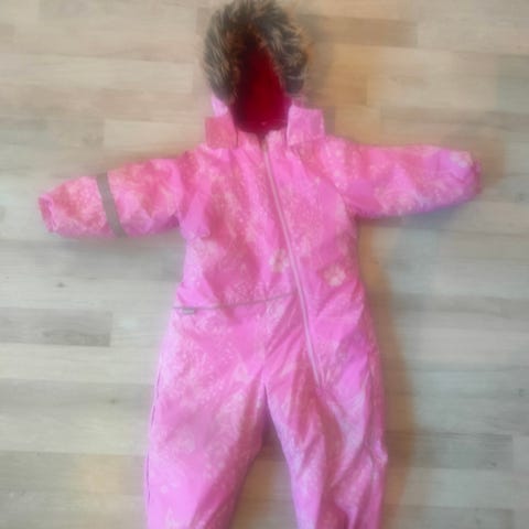 Talvihaalari, koko 86, unisex. Haalari on väriltään kirjava ja sopii sekä pojille että tytöille. Materiaali ja rakenne on suunniteltu suojaamaan lasta kylmältä ja kosteudelta. Haalarissa on kiinnitykset jaloissa ja hihansuissa, jotka estävät kylmän ilman pääsyn sisään.