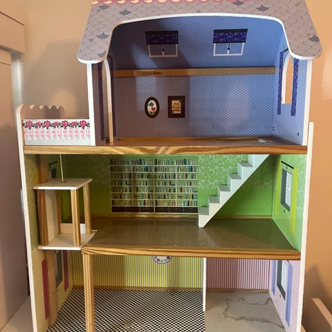 Ikean FLISAT nukketalo/ kirjahylly. Katossa pientä jälkeä väri kynästä. Tästä ihana projekti jollekkin tai käyttöön tämmösenä.