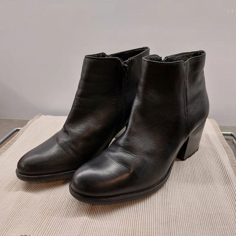 Tyylikkäät mustat Vox Shoes-merkkiset nilkkurit. Koko 41. Korko 8 cm.