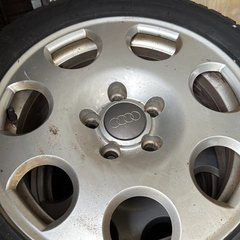 Vanha Nokian Hakka 6 nastakumi Audin aluvanteella vaikka vararenkaaksi. Renkaan DOT3612 ja pintaa n.4mm.