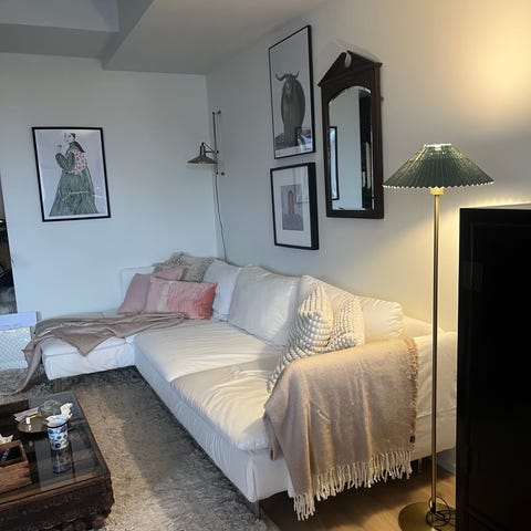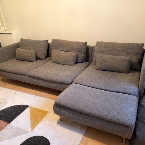 IKEAn divaanisohva Söderhamn-sarjasta Friidtuna vaalea beige kankaalla. Uudet päälliset.
