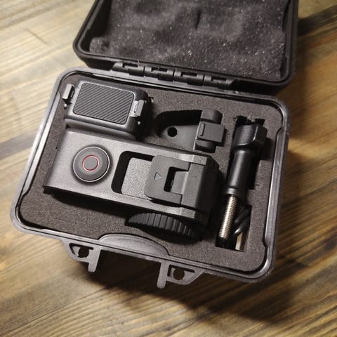DJI Osmo Action actionkamera. Kamera tukee 4K-videokuvausta ja on varustettu etu- ja takanäytöllä. Mukana kolme akkua, latauskaapeli, laturi kolmelle akulle, yksi kiinnike ja muistikortti tulee mukana 128gb.