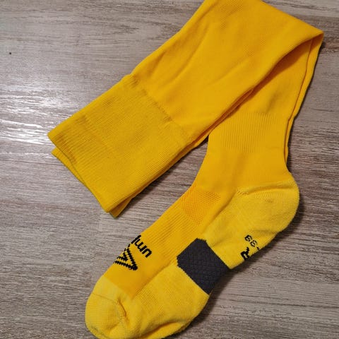 Umbro urheilusukat kokoa 40-44, väriltään keltainen. Sukissa on mustat logot ja ne on suunniteltu urheilukäyttöön.