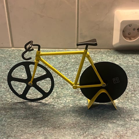 Täysin käyttämätön aikanaan lahjaksi saatu pizzaleikkuri alkuperäispakkauksessaan. Leimassa lukee Hopea 830 A9 eli tämä on valmistettu 2022. Kahvassa säilytyksen jäljiltä patinaa mutta saa varmasti puhdistettua.