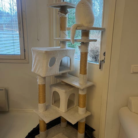 Annetaan kissan raapimispuu. Puussa kaikki mukavuudet eli riippumatto, pesä ja tähystystorni. Puu on käytetty, mutta raavittavaa riittää vielä. Mukaan saa lelulaatikon virkaa toimittaneen pingviinikorin. Kangasosat pesty. Vain nouto, nopein hakija etusijalla.